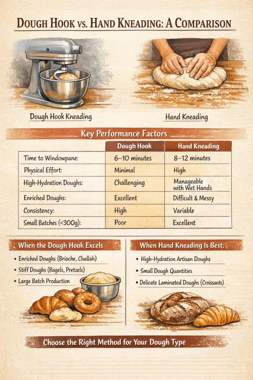 Maskinen erstatter ikke bagerens dømmekraft. At kende din dej, læse dens tekstur og teste for korrekt udvikling er færdigheder, der forbliver afgørende, uanset om en krog eller et par hænder udfører det mekaniske arbejde.