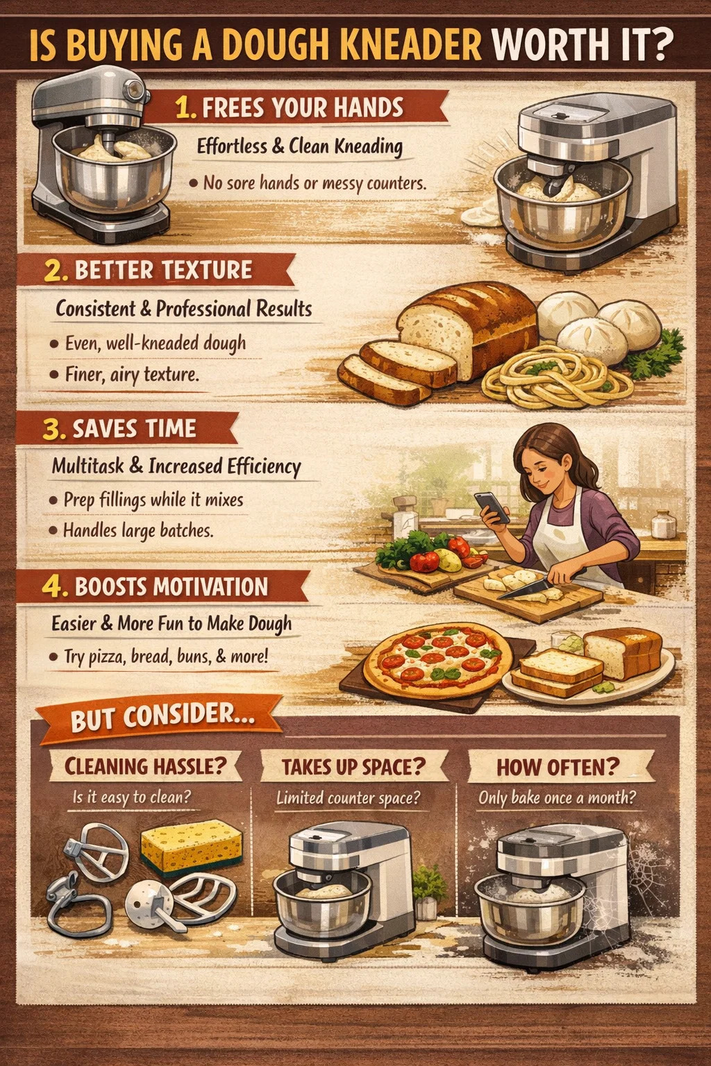 Er ved at købe en dej æltemaskine virkelig det værd? Det afhænger primært af, hvor meget du elsker at lave pasta, og hvor meget du værdsætter din tid. Det er ligesom en opvaskemaskine eller en robotstøvsuger – nogle mennesker tror, det er en livredder, mens andre synes, det bare fylder.