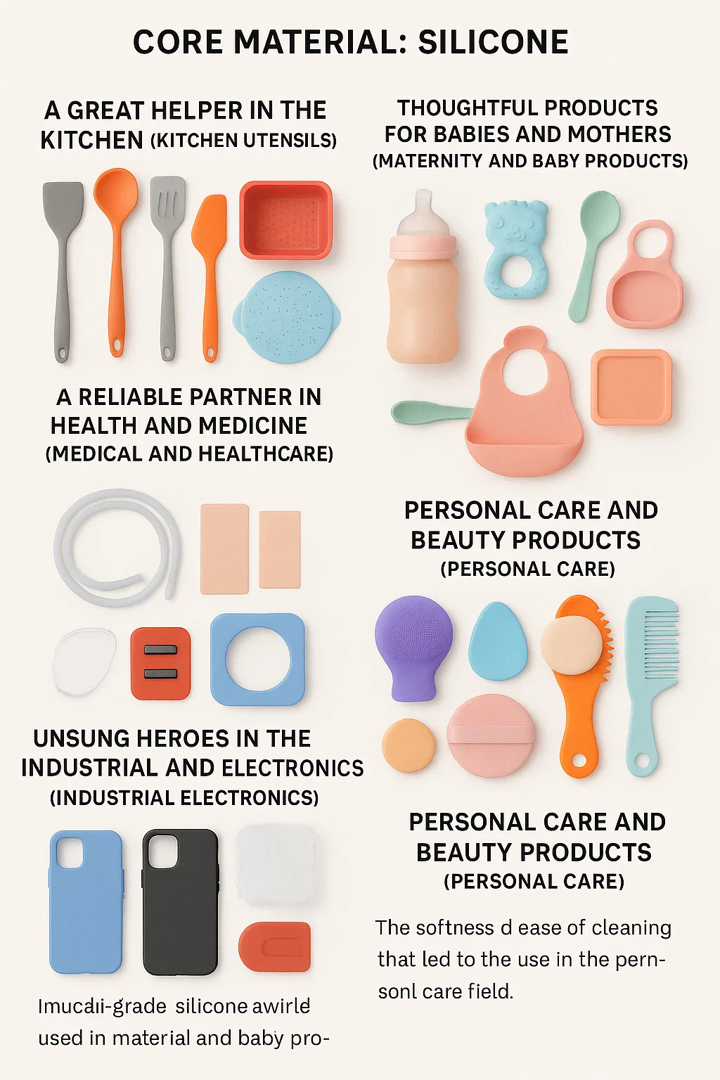 På grund af dets sikkerhed og ikke-toksicitet er silikone meget udbredt i barsels- og babyprodukter.